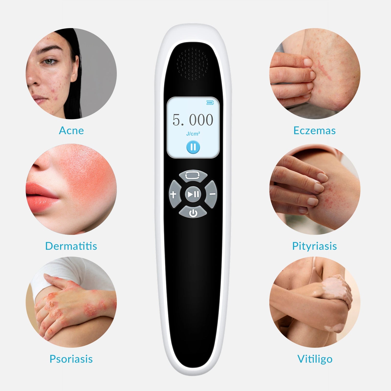 • Highly-targeted Therapy for Localized Areas: With an 4cm² treatment size, the 308nm device ensures precise treatment, focusing on affected skin while protecting surrounding healthy areas.