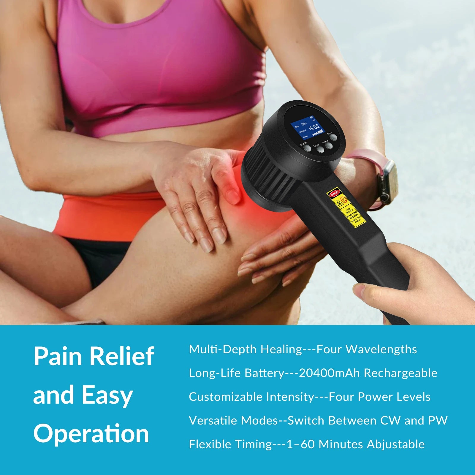 Laser therapy is a safe, painless, and fast treatment used for sports injuries, chronic pain, post-surgery recovery, muscle healing, and wound care. It works by stimulating the body's natural healing processes at the cellular level.The Class IV High Power Laser Therapy Device uses advanced laser technology to reduce pain, decrease inflammation, and accelerate healing. Its high power allows for deeper tissue penetration and shorter treatment times compared to lower-level lasers.This professional-grade device offers a non-invasive, drug-free solution for effective pain management and recovery.