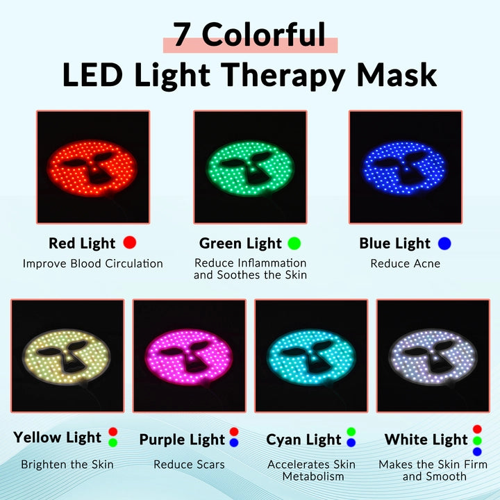 It uses 7 targeted light wavelengths (including red, blue, green, etc.) that penetrate skin layers to support cellular activity. This may help stimulate collagen production, improve texture, and address concerns like uneven tone or mild redness over time.​
